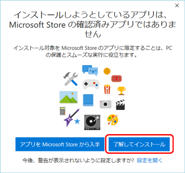 ツールのインストール時に以下のような警告画面が表示される場合があります。