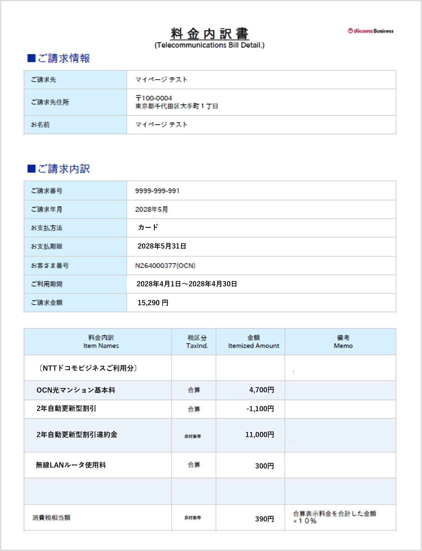 最終のご請求については、OCNマイページ内の「ご利用料金」ページ、または「オンライン領収証」からもご確認いただけます。